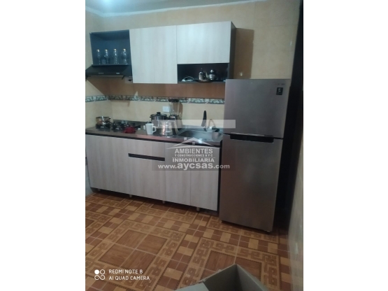 Antejardín con piso enchapado en cerámica, reja de seguridad alta, cielo falso en PVC, amplio salón comedor, pisos enchapados en cerámica, baño social, cocina integral enchapada en cerámica (mueble superior e inferior campana extractora, estufa empotrada a gas conectada a red de gas domiciliario, patio de oficios, parades estucadas y pintadas de blanco.