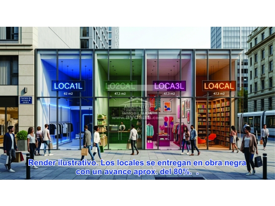 El inmueble cuenta con 4 locales comerciales independientes, cada uno con 4,30 m de frente  x 11 m de fondo altura 3,70 m; sobre la vía, ideal para generar renta.
